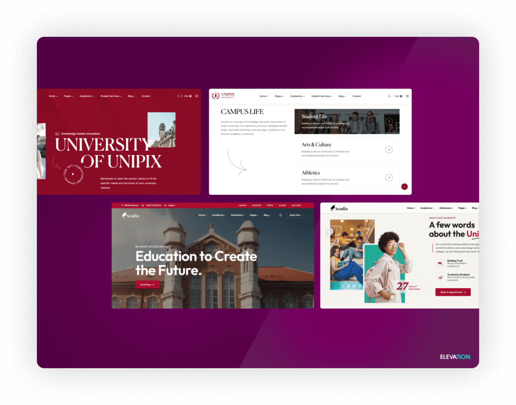 Engaging Visuals & Branding: High-quality images, cohesive color schemes, and consistent branding elements create a professional and welcoming atmosphere that reflects the school’s identity.