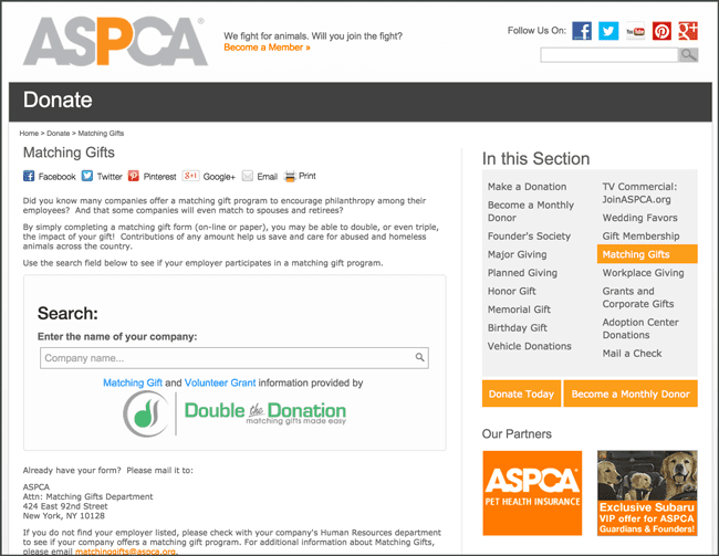 Dedicated “Matching Gifts” pages can be a great way for donors to learn more about matching gifts in general, but they are also useful in helping donors find out if their own employers offer such programs. Make the most of your website and start promoting matching gifts on a dedicated “Matching Gifts” page.