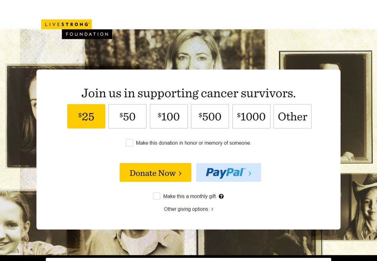 - Gives the option of donating monthly or in honor of someone