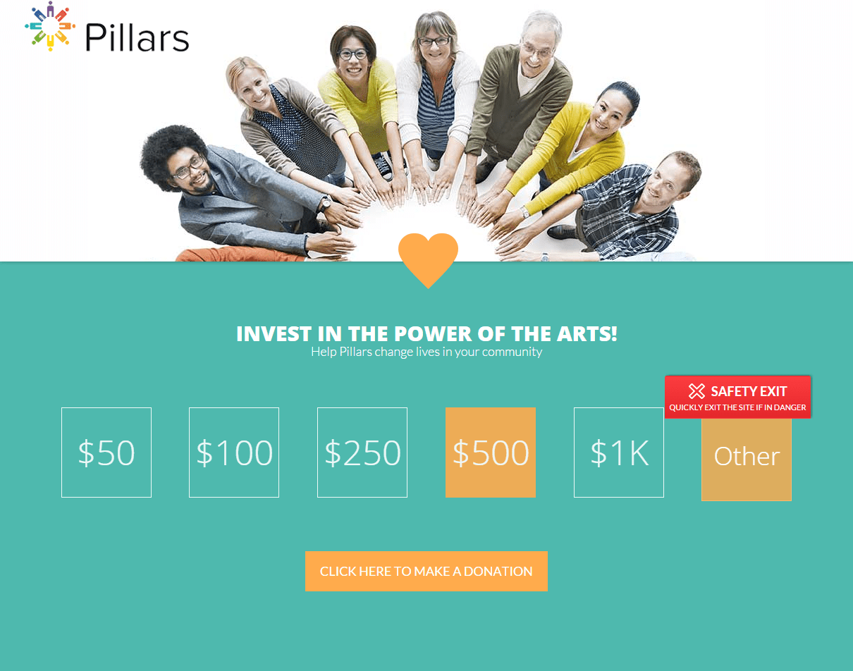 - Branded donation page that matches the layout, color scheme of the entire site and organization