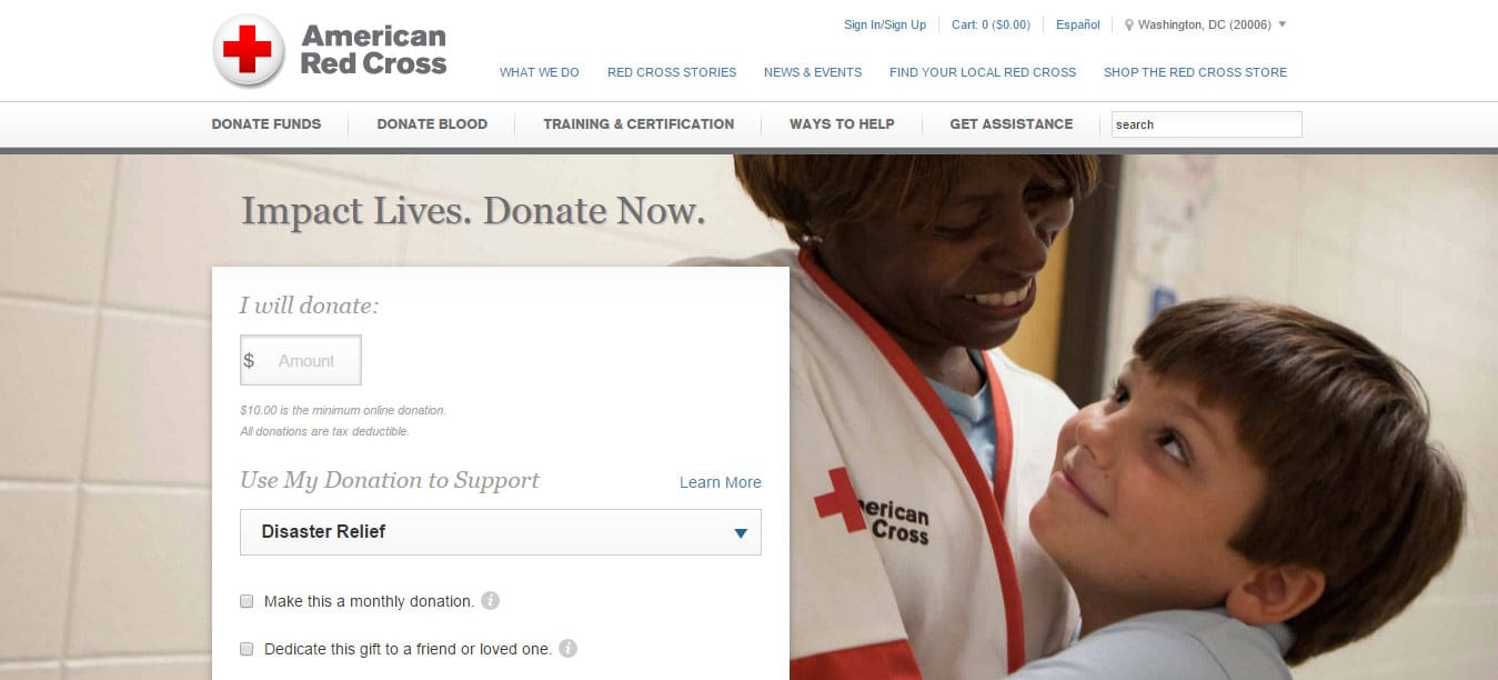 - Specific to the Red Cross, as a donor, you can customize the cause you wish to support and 3-4 options are usually displayed. Red Cross has by far the most user-customized donation process.